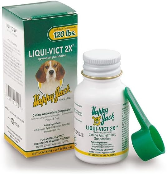 - Description: Pyrantel pamoate liquid for roundworms and hookworms, ideal for dogs up to 120 lbs. This product is suitable for puppies who are 2+ weeks old.