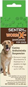 - Description: Pyrantel pamoate suspension for roundworms and hookworms, suitable for dogs of all ages. The product comes in a 2 oz bottle.